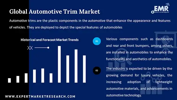 The increasing global sales of luxury automobiles such as sedans and convertibles are increasing the demand for innovative automotive trims, which has propelled the market growth. The rising demand for passenger cars due to rapid population growth and growing disposable incomes in developing nations has escalated the demand for exterior and interior trim parts. As consumers are preferring cars with enhanced comfortability and safety, the deployment of interior trim solutions is surging, which has invigorated the growth of the market.