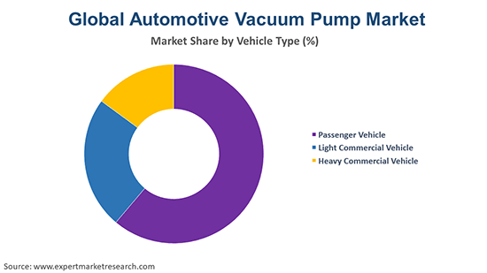 Based on vehicle type, the passenger vehicles segment is witnessing a robust growth and is expected to account for a significant share in the industry in the forecast period. The rising sales of passenger cars owing to the escalating consumer disposable incomes, particularly in emerging nations, are facilitating the market growth. Meanwhile, commercial vehicles are anticipated to spur the growth of the automotive vacuum pump market in the forecast period owing to the increasing adoption of light and heavy commercial vehicles in various industries and SMEs.