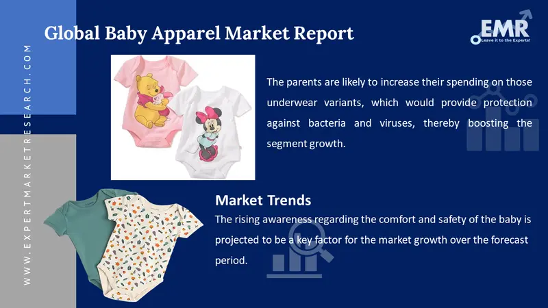 Rising awareness regarding the comfort and safety of the baby and growing demand for stylish and trendy baby wears are the key industry trends propelling the growth of the market.