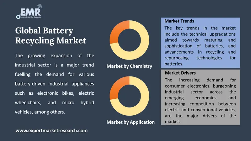The key driving factor of the battery recycling market is the growing demand for environmentally friendly waste management solutions.