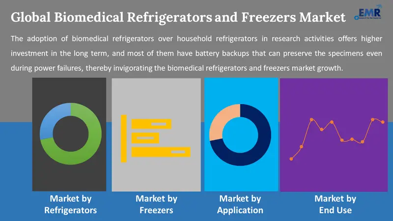 The rapidly increasing technological advancements in the market, such as the introduction of smart surfaces, touch screen interfaces, remote control systems, temperature tracking in real time, and the management of data with cloud-based services, among others, are also aiding the biomedical refrigerators and freezers market expansion. Other key factor aiding the market growth include the rising focus on the compliance and regulatory requirements of the product for the storage and handling of biomedical products. The manufacturers of biomedical refrigerators and freezers are using advanced features and technologies to make sure of the compliance with these regulations, such as temperature monitoring systems, alarm systems, data logging capabilities, and validation protocols.