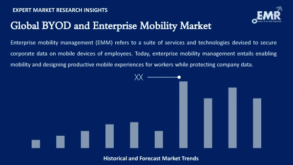 The BYOD and enterprise mobility market size is expected to be expanded by advancements in technology, increasing number of connected devices, employee preference for using their personal gadgets for office work related tasks, and the advantages offered by BYOD programs, such as employee access to corporate apps and data on personal devices, reduced costs for firms, and increased employee productivity and job satisfaction. North America, Europe and Asia are expected to be key markets.