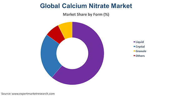 The leading forms of calcium nitrate in the market are liquid, crystal, and granule, among others.