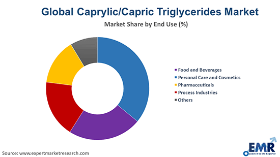 The major end uses of caprylic/capric triglycerides include food and beverages, personal care and cosmetics, pharmaceuticals, and process industries, among others.