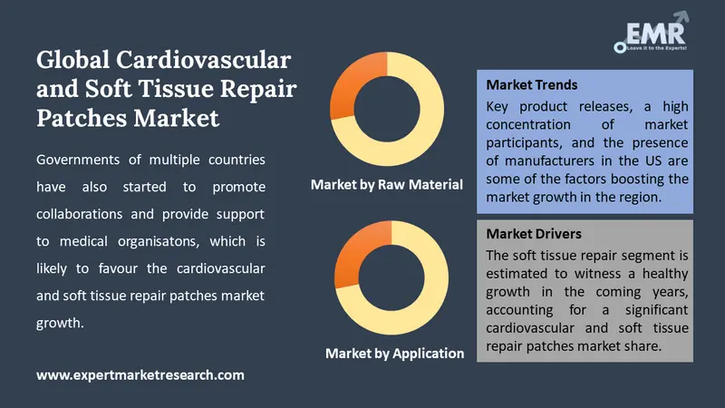 Cardiovascular and soft tissue repair patches are specialised medical devices designed to support tissue regeneration and healing in cardiac and soft tissue procedures. These patches, made from biological or synthetic materials, are used in surgeries to reinforce weakened or damaged tissues, such as in congenital heart defects, vascular repairs, and hernia treatments. They promote cell integration, reducing complications and improving patient outcomes. With advancements in biomaterials and regenerative medicine, these patches offer enhanced biocompatibility, durability, and adaptability, making them essential in cardiovascular and reconstructive surgeries worldwide.