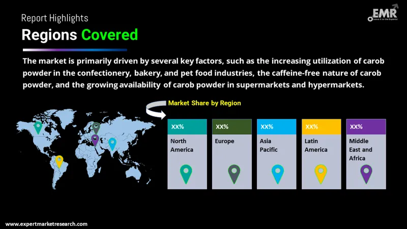 At a regional level, Europe accounts for one of the largest shares of the global carob powder market which can be attributed to the rising customer interest in healthier chocolate substitutes. The Europe carob powder market is influenced by increasing demand for plant-based, gluten-free, and organic products. Companies like CarobWorld in Greece are investing in sustainable sourcing and expanding production to meet growing consumer demand for natural ingredients. The European market is also seeing innovations in carob-based confectionery and health supplements, as consumers seek healthier alternatives to sugar. Strict EU regulations on food safety and sustainability are further driving these market dynamics.