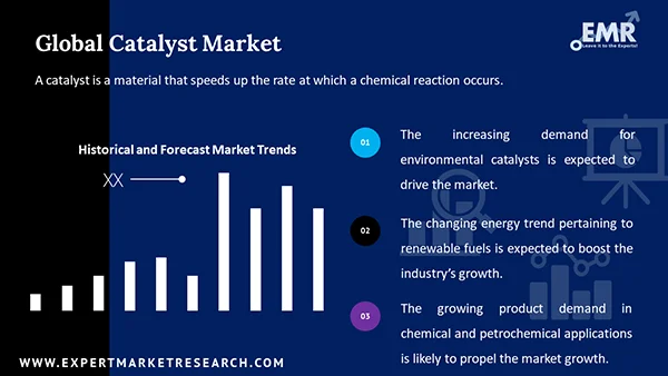The major market drivers include the growing usage of catalysts in various end-use sectors, the increasing demand for environmental catalysts, and growing urbanisation and industrialisation.