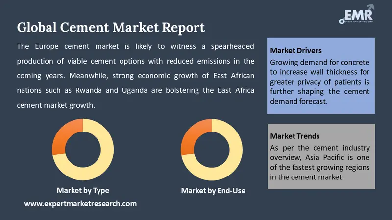 Key trends aiding market expansion include the growing emphasis of various governments towards developing high-quality cement infrastructure, and rising investments aimed towards developing energy efficient cement with reduced carbo footprint.