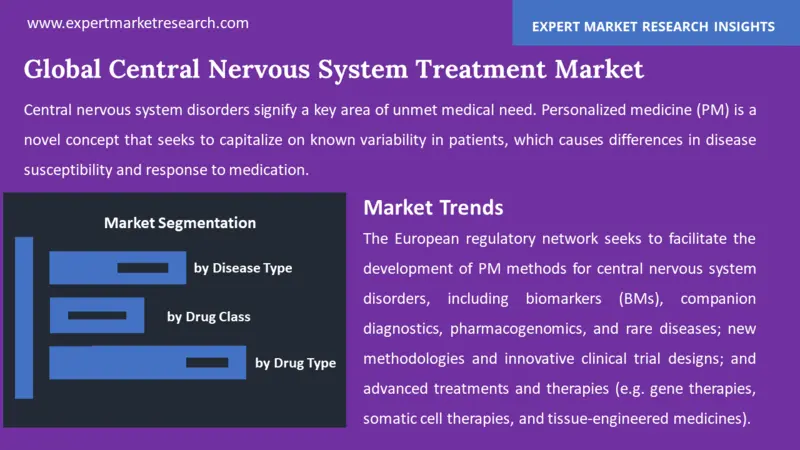 Increasing incidence of neurological disorders and regulations seeking to support treatment systems for central nervous system disorders are the key industry trends propelling the market's growth.
