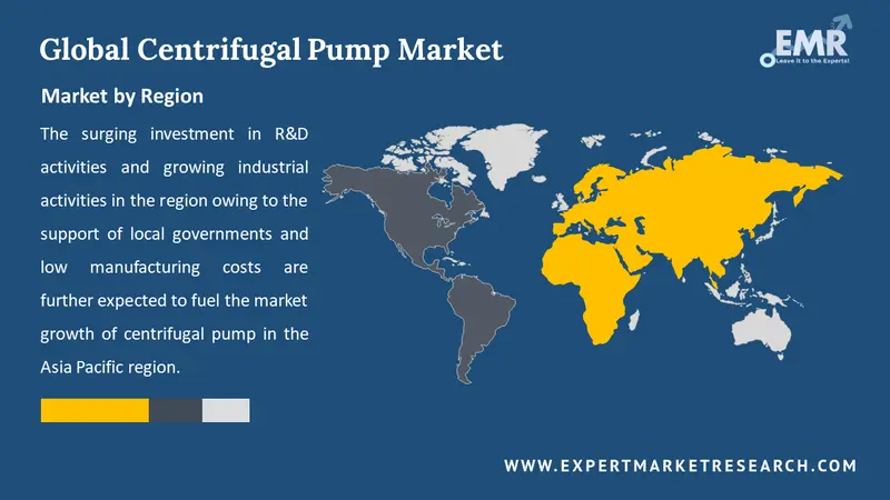 The Asia Pacific region is expected to witness significant growth in the centrifugal pump market due to the economic expansion in countries like China, Japan, India, South Korea, Australia, and Singapore, among others. The increasing attraction of investors for the production and manufacturing of centrifugal pumps due to the availability of raw materials, cheap labour, and strong economic case for channelling capital flows in emerging economies is also driving the market growth of the region. The surging investment in R&D activities and growing industrial activities in the region owing to the support of local governments and low manufacturing costs are further expected to fuel the market growth of centrifugal pump in the Asia Pacific region. With the increasing demand for centrifugal pump in various end-use industries and market expansion strategies by pump manufacturers in the region, the market for centrifugal pumps is expected to propel over the coming years in the region, which is likely to significantly contribute to the overall market’s expansion in the forecast period.