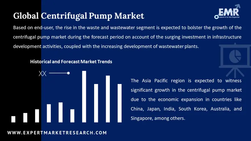 Based on end-user, the rise in the waste and wastewater segment is expected to bolster the growth of the centrifugal pump market during the forecast period on account of the surging investment in infrastructure development activities, coupled with the increasing development of wastewater plants. Rapid industrialisation and the rising demand for centrifugal pumps by municipalities in various applications are expected to propel the market demand for centrifugal pumps across the globe over the upcoming years. Moreover, the introduction of various favourable government initiatives to boost industrialisation, the surging product demand from the wastewater treatment industry, and the integration of IoT sensors in centrifugal pumps, are further anticipated to bolster the market growth of centrifugal pump in the forecast period.
