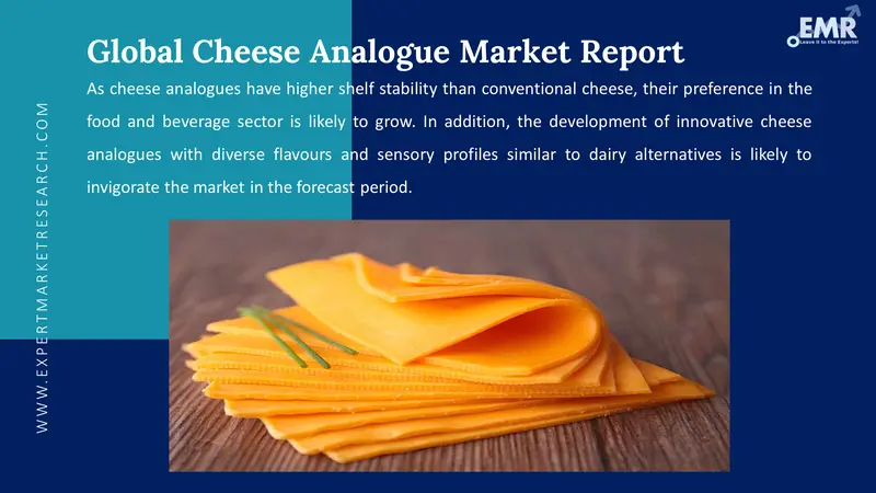 The cheese analogue market is expected to witness significant growth due to the escalating demand for cheese. As cheese analogue is easy to manufacture and cost-effective, it is increasingly preferred as a culinary replacement for cheese. As cheese analogues have higher shelf stability than conventional cheese, their preference in the food and beverage sector is likely to grow. In addition, the development of innovative cheese analogues with diverse flavours and sensory profiles similar to dairy alternatives is likely to invigorate the market in the forecast period.