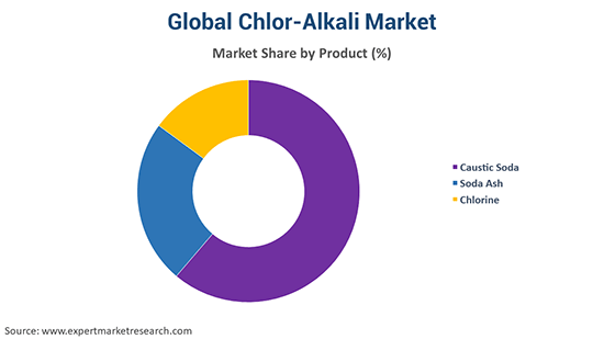 The chlor-alkali market in the Middle East and Africa region is witnessing the fastest growth owing to industrial diversification agendas and increasing demand for water treatment solutions. Governments are promoting non-oil-based sectors including textiles, FMCG, and construction chemicals, directly fuelling caustic soda and chlorine consumption. Large-scale desalination projects and wastewater treatment infrastructure development are emerging as significant demand boosters for caustic soda.