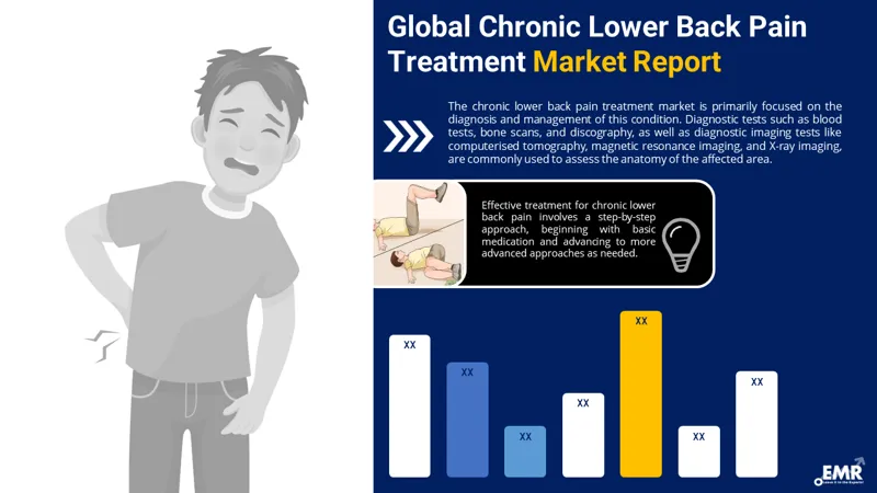 The diagnosis and management of chronic lower back pain account for the chronic lower back pain treatment market. The diagnostic tests include blood tests, bone scans, and discography. Diagnostic imaging tests, such as computerised tomography, magnetic resonance imaging, and X-ray imaging are also used to assess the body’s anatomy.