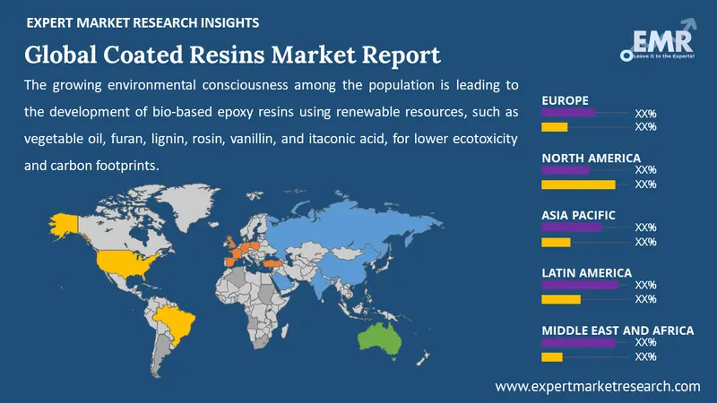 The major market drivers include the growing applications of coated resins in various sectors, expanding construction projects, increasing production of automobiles, exceptional characteristics of coated resins, rising eco-consciousness, and development of bio-based coating solutions.
