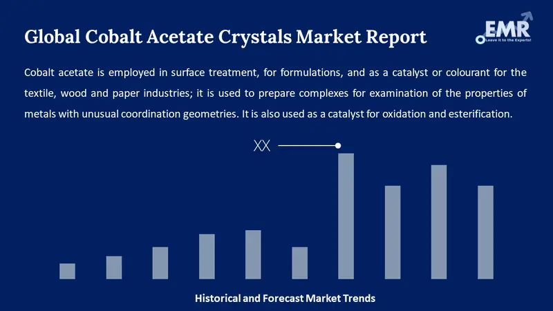 The global cobalt acetate crystals market is expected to grow at a CAGR of 6.10% during the period 2026-2035. Cobalt Acetate is produced and available as fine crystals with uniform size distribution; employed primarily as a catalyst in the polyester industry. Industrial uses include ion exchange agents, pigments, plating agents and surface treating agents, and processing aids. North America, Europe and Asia are expected to be key markets.