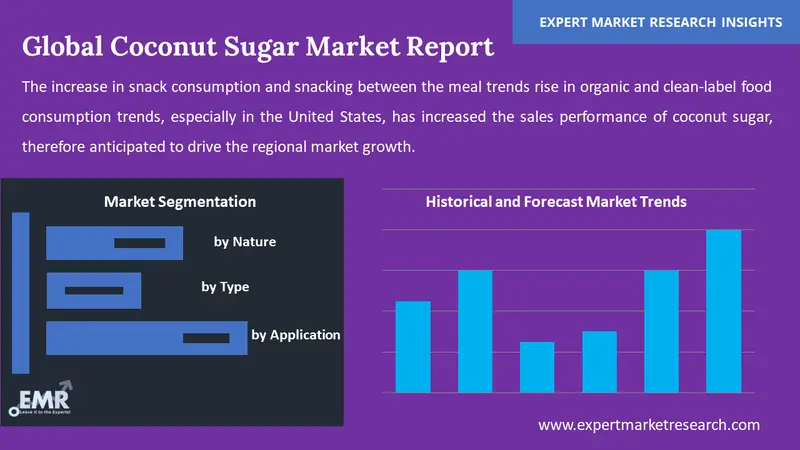 Over the forecast period, the market in North America is also expected to increase at a significant rate. This is due to the presence of major food companies, like Tyson Foods and PepsiCo and the rising health issues, like obesity and diabetes in the region due to unhealthy or inadequate eating habits. The increase in snack consumption and snacking between the meal trends rise in organic and clean-label food consumption trends, especially in the United States, has increased the sales performance of coconut sugar, therefore anticipated to drive the regional market growth.