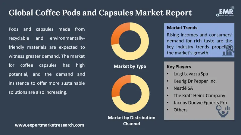 The growth of the coffee pods and capsules market is increasingly centred on sustainability, driven by consumer demand for eco-friendly products. Brands are creating compostable or recyclable capsules to minimise environmental impact. Innovations in packaging materials, such as bioplastics, are gaining momentum, and companies are adopting circular economy practices. This trend not only attracts environmentally conscious consumers but also aligns with global sustainability objectives, prompting manufacturers to investigate more sustainable sourcing and production methods. Consequently, eco-friendly options are becoming more mainstream, influencing purchasing decisions and fostering greater brand loyalty. In September 2022, CoffeeB launched a sustainable alternative to coffee capsules, promoting it as the world's most environmentally friendly coffee 'capsule'. Introduced earlier this year by Swiss retail company Migros, CoffeeB is marketed as a 'capsule-less' coffee capsule system.