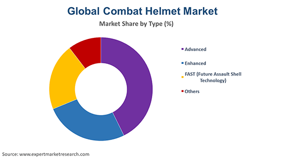 The leading types of combat helmet in the market are advanced, enhanced, and FAST (future assault shell technology), among others.