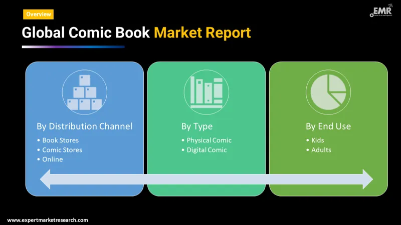 The global comic book market is segmented based on product type, distribution channel, end use, and region.