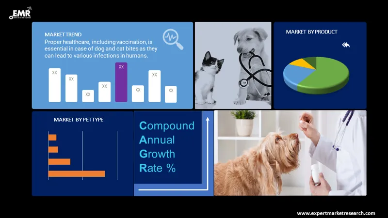 The major drivers of the market include the increasing pet adoption worldwide, growing penetration of e-commerce platforms promoting online pharmacies, growing technological advancements in animal healthcare, and increasing availability and adoption of pet health insurance.