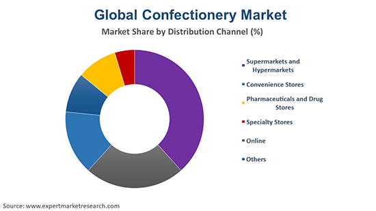Based on product type, the chocolate segment is currently leading the global market for confectionery. This can be attributed to the growing popularity of pure chocolates and the increasing expenditure of consumers to satisfy their palates as all age groups consume chocolates or gums. Meanwhile, the ever-increasing demand for dark premium chocolates is anticipated to grow significantly in the forecast period, thus, aiding the market growth.