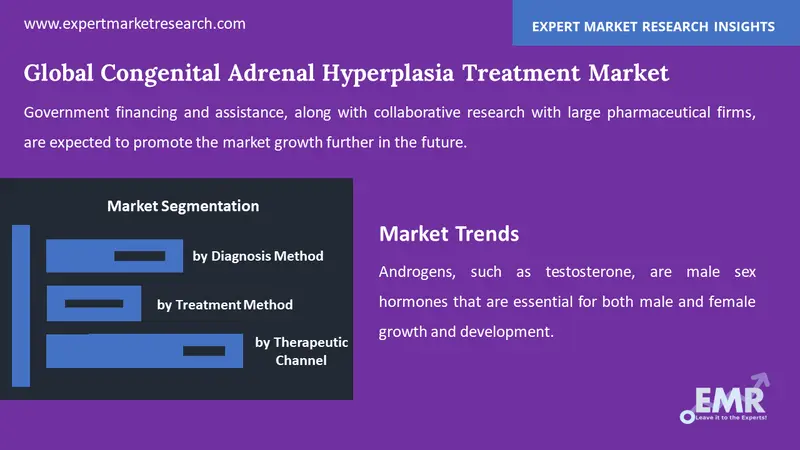 The increasing prevalence of congenital adrenal hyperplasia and genetic abnormalities is driving the growth of the global congenital adrenal hyperplasia treatment market. Many government organisations are assisting R&D and manufacturers by providing research grants. The rising demand for better treatment and increased government backing has fuelled the growth of the global market. Government financing and assistance, along with collaborative research with large pharmaceutical firms, are expected to promote the market growth further in the future.