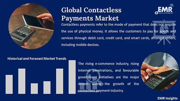 The contactless payments market value is further anticipated to be increased by the growing penetration of smartphones and the Internet, especially in emerging economies. The introduction of favourable government initiatives aiding the development and expansion of contactless payment platforms is also expected to catalyse market growth in the coming years.