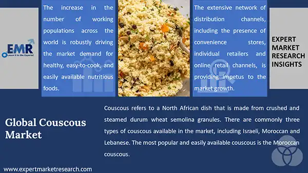The market is being driven by the rising awareness regarding the health benefits associated with couscous, inflating disposable incomes, and growing use of couscous in the health and wellness market.