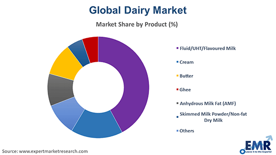 The demand in the dairy market is driven by the rising consumer awareness of the health benefits of dairy products and the expanding range of available products. The versatile range of dairy products encourages their widespread consumption, including through direct products such as milk, yoghurt, and ice cream, as well as in cooking, in the form of butter and cheese. The growing trend of organic products is influencing the dairy demand, as more consumers seek organic dairy products that do not have any chemical components. An increase in distribution channels is further augmenting the market for dairy, with consumers able to access dairy products from local convenience stores, larger chain supermarkets/hypermarkets, and online retailers.