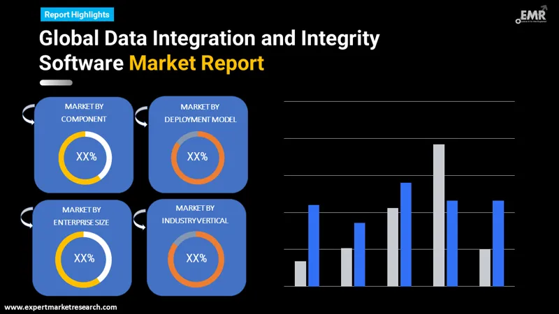 The integration of the latest technologies like artificial intelligence (AI) and machine learning in data integration and integrity software is expected to bolster the market growth. Such technologies are leading to the automation of data collection and analysis while bolstering decision-making processes. In addition, the deployment of machine learning and artificial intelligence (AI) ensure the effectiveness of data pipelines by simplifying the creation of integration. As such technologies eliminate the requirement for human intervention, they bolster the overall cost-effectiveness of data integration and integrity software. Hence, the growing exploitation of artificial intelligence (AI) and the increasing deployment of the latest technologies in data integration and integrity software are anticipated to bolster the market growth.
