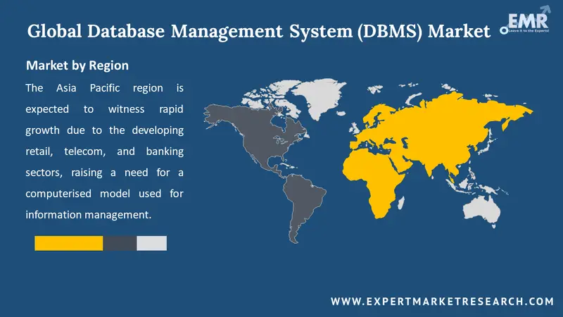 Key Insight: North America remains a dominant player in the global market, supported by its mature technology landscape and the presence of leading cloud providers. As businesses in North America increasingly adopt AI, big data analytics, and IoT technologies, the demand for scalable, secure database solutions continues to rise. The European database management system (DBMS) industry growth is driven by strong regulatory frameworks and the adoption of GDPR, emphasizing data protection and privacy. Asia Pacific is expected to see the fastest growth, driven by digitalization and the rising demand for big data analytics across emerging markets.