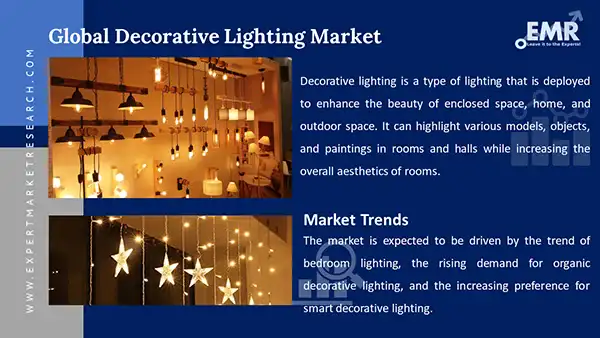 The key trends propelling the market growth include the growing trend of bedroom decorative lighting and the increasing preference for smart decorative lighting.