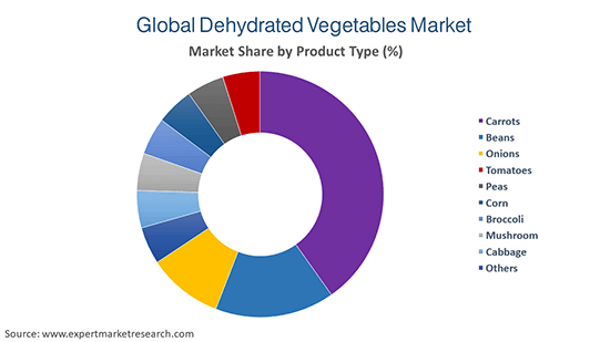 The various product types in the market are carrots, beans, onions, tomatoes, peas, corn, broccoli, mushroom, and cabbage, among others.
