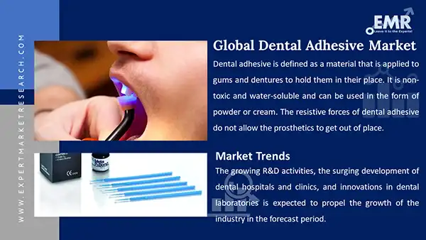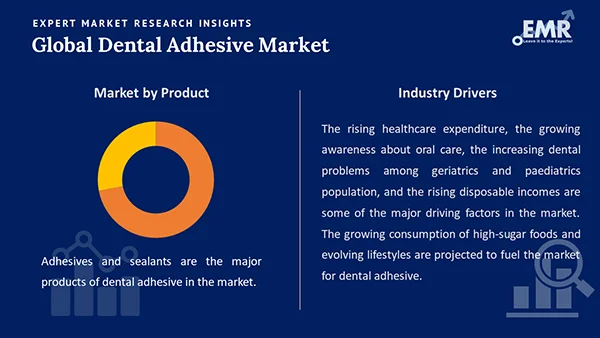 The rising healthcare expenditure, the growing awareness about oral care, the increasing dental problems among geriatrics and paediatrics population, and the rising disposable incomes are some of the major driving factors in the market. The growing consumption of high-sugar foods and evolving lifestyles are projected to fuel the market for dental adhesive. Additionally, the increasing prevalence of xerostomia, root and coronal caries, and periodontitis, among others, is anticipated to accelerate the demand for dental adhesives. The surging inclination towards minimally invasive dental treatment procedures is anticipated to provide further impetus to the market in the forecast period.
