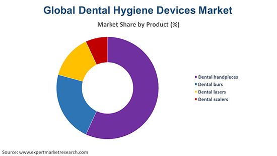 Dental handpieces, dental burs, dental lasers, and dental scalers are the leading products in the market.
