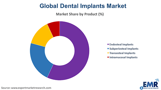 Dental implants are referred to as artificial tooth roots that are used to provide support to the false teeth and tooth bridges. They are frames composed of biocompatible metals, like zirconia and titanium, that are surgically placed in the jawbone underneath the gums to offer support for artificial teeth. This helps secures the denture and bridges whilst providing a more natural feel as opposed to conventional dentures. At present, three variants of dental implants are available in the market, such as endosteal, subperiosteal, and transosteal. Amongst these, endosteal implants are transplanted into the tissue to which the bridge or denture is attached.