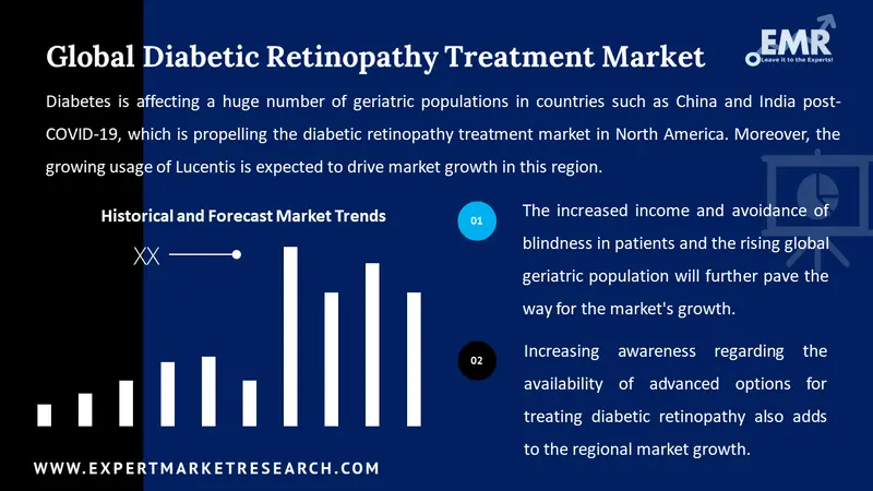 Diabetes causes damage to the eyes, thus, the growing cases of diabetes among the world population are expected to accelerate market growth. The favourable government policies to make advanced healthcare services available to the masses and extensive research and development activities are likely to generate various new opportunities that will impact diabetic retinopathy treatment market value in the forecast period. Additionally, the expansion of healthcare infrastructure and the rising demand for early detection technologies are some of the other driving factors for the DR treatment market. The clinical pipeline for DR seems full of promises, with lots of drugs under the umbrella specifically targeting diabetic retinopathy among diabetic patients. Moreover, technological advancements in ophthalmic surgical and diagnostic instruments will aid the growth of the diabetic retinopathy treatment market during the forecast years.