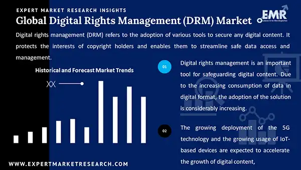 As per the global digital rights management (DRM) market report, DRM supplies decryption keys for media like e-books and music, safeguarding intellectual property. It also secures educational materials and systems like AMS and LMS. Rising global demand for DRM is due to its restrictions on content editing, forwarding, saving, and printing.