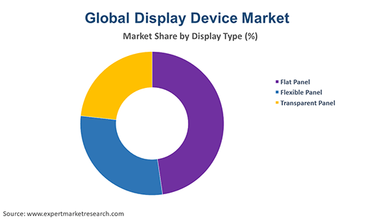 The leading display types in the market are flat panel, flexible panel, and transparent panel.