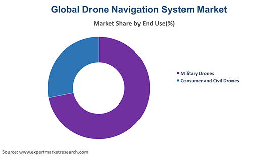 Incorporating improved sensors into drones is aiding the growth of the industry. The increasing drone use in the defence industry is expected to drive the industry growth. The incorporation of artificial intelligence (AI) into drones is one of the dominant phenomena that has accelerated the growth of the global market for drone navigation systems. Improved AI technologies are going to fuel the market growth over the next decade. AI-powered drones can collect data in real-time. Future AI-enabled drones will have fully automated navigation systems to enhance these machines' safety aspects. Such benefits would increase the demand for AI-enabled drones, contributing to the growth of the global drone navigation system market in the forecast period.