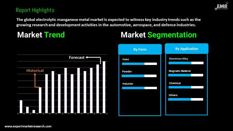Electrolytic manganese metal, also known as high purity manganese, is defined as an element which is considered as a pure form of manganese and is obtained by electrolysing manganese during its refining process. It is a hard and durable metal with high corrosion and wear resistance. The automotive industry is a major consumer of this metal.