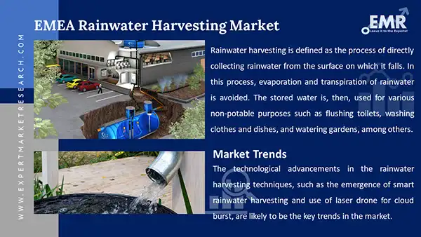 Water is an extremely essential resource which finds increased usage in various direct and indirect commercial and industrial processes. Water is used to process wood in the paper making process; it is used in the servicing of automobile parts in the automotive industry; and is also used for irrigation in the agriculture sector. The rising environmental awareness, in confluence with the growing consciousness pertaining to the shortage of water resources is projected to support the market growth. In addition, the rising demand for water across the commercial, industrial, and residential sectors in Europe and the Middles East and Africa, owing to the increasing population and rapid urbanisation, is predicted to drive the market growth. Additionally, the governments in the region are increasingly investing in the development of efficient rainwater harvesting strategies to meet the demands of the growing population. Moreover, rainwater harvesting provides cost saving benefits in the residential sector, as the collected water can be used for bathing, laundry, washing dishes, and flushing toilets, among other purposes.