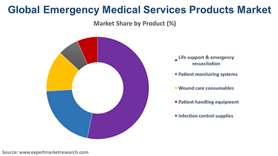 The products available in the market include life support and emergency resuscitation, patient monitoring systems, wound care consumables, patient handling equipment, and infection control supplies.