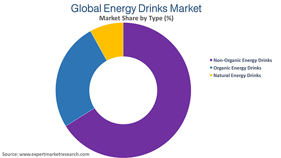 Non-organic energy drinks, organic energy drinks, and natural energy drinks are the significant types of energy drinks available in the market.