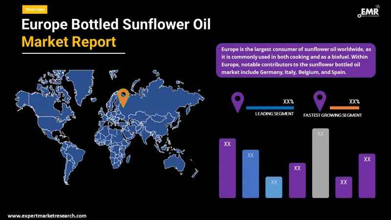 At a global level, Europe is the largest consumer of sunflower oil, due to its usage in cooking and as a biofuel. Within Europe, countries with significant shares in the sunflower bottled oil market are Germany, Italy, Belgium, and Spain. Sunflower oil is specifically used in bakeries and other food preparations. Other factors that contribute to the growth of the market in Europe include new sale tactics, import-export tariffs, and regulatory acts.