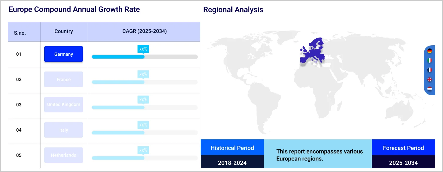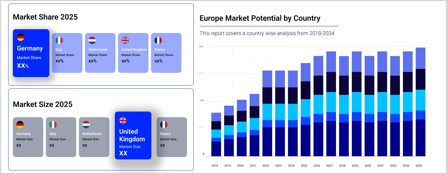 The market is broken down into Germany, the United Kingdom, France, and Italy among others.