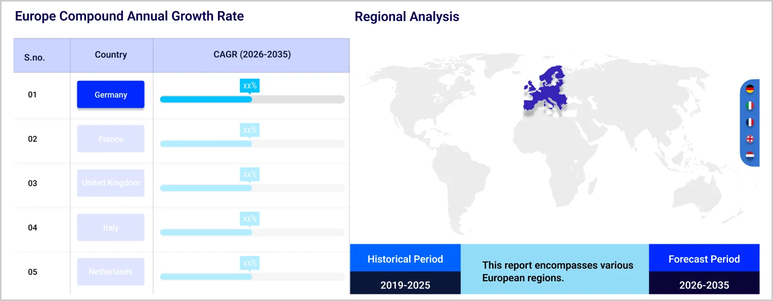 The major regions in the industry are the United Kingdom, Germany, France, and Italy, among others.