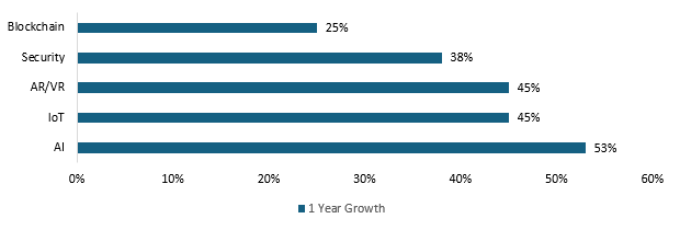 Figure: Top Five Technological Skills in the Textile Sector with the Highest Growth from 2018 to 2019 Among EU27 Countries.
