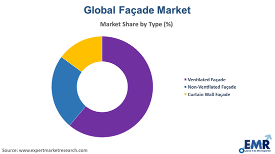 The major product types include ventilated, non-ventilated, and curtain wall façade, with the non-ventilated types leading the market.